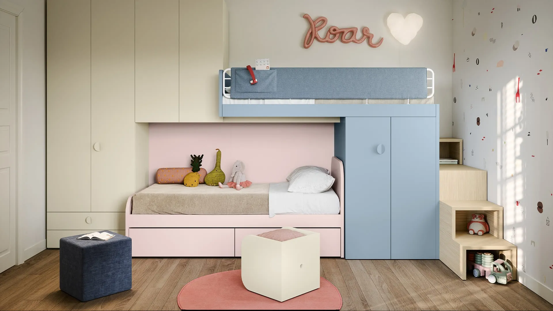 La Cameretta con letti a soppalco di Nidi in melaminico è un universo complesso da decorare attentamente, coniugando vari accessori su misura. Vieni nel nostro showroom e potrai toccare con mano tutte le più originali composizioni d'arredo a soppalco moderne di Nidi per i più piccoli. Nidi asseconda lo stile dei piccoli e i desideri dei genitori con le sue Camerette moderne a soppalco, ideali per esigenze di ogni genere. Colori di tendenza e progetti articolati ad hoc caratterizzano le più originali composizioni del noto e rinomato marchio che presentiamo nel nostro showroom.