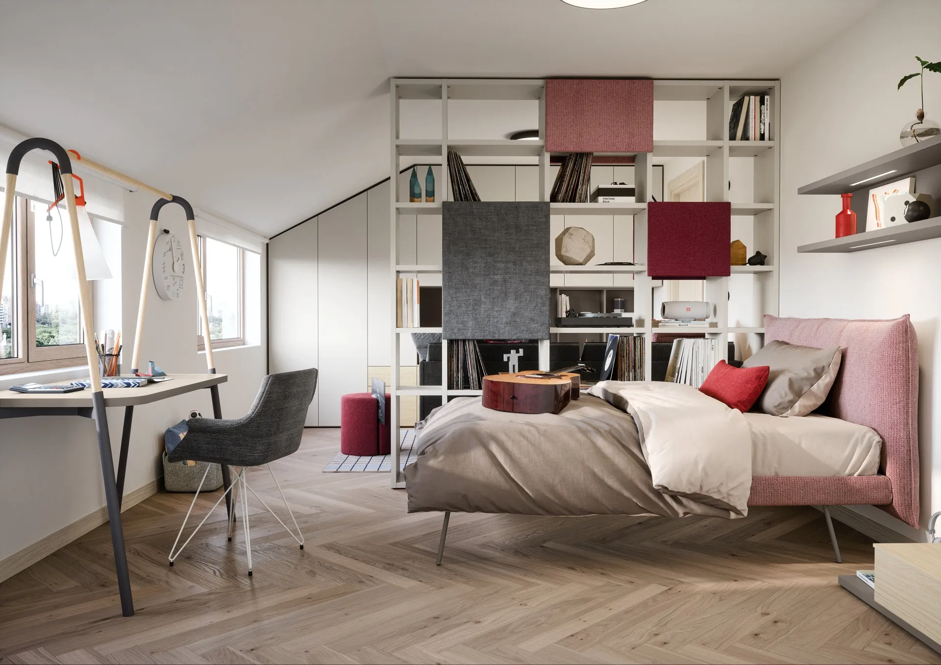 Il Letto singolo Pillow di Nidi in foto è ideale per ultimare perfettamente la cameretta dei tuoi figli, abbinandosi alla perfezione con armadi e comò, elementi accessori e quant'altro. Contattaci e ottieni informazioni sulla nostra linea di Letti singoli in tessuto: arreda la camera dei più piccoli come l'avevi immaginata. Se vuoi mobili ed elementi accessori moderni, il letto singolo in foto fa al caso tuo: #appartiene alla@# nostra linea di letti singoli imbottiti. Questo è uno tra i prodotti più esclusivi del brand Nidi, sinonimo di resistenza nel tempo, qualità dei materiali e uno stile unico.