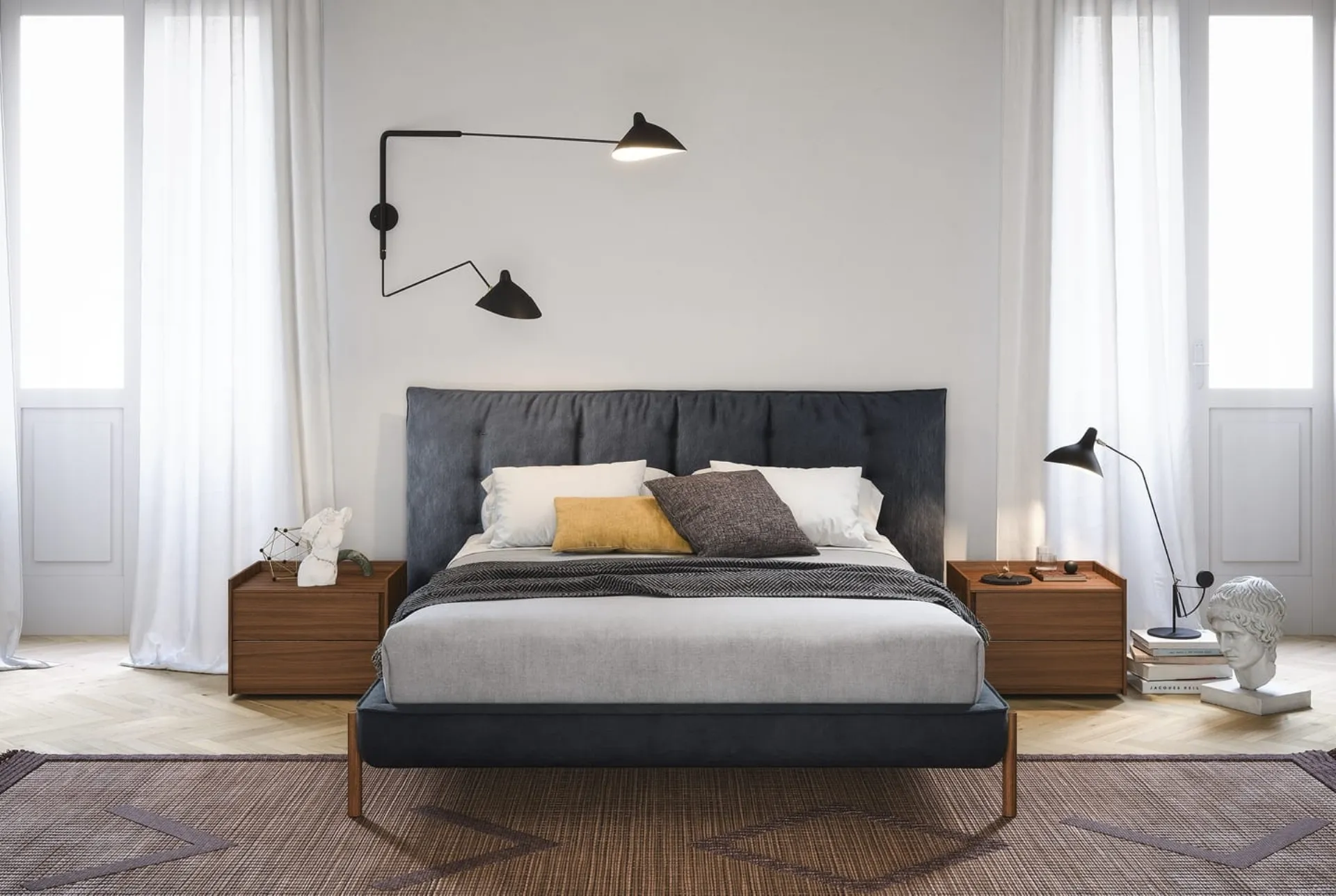 Per ultimare al meglio l'arredo della tua zona del riposo è essenziale valutare gli abbinamenti del letto con armadi e comodini, accessori e quant'altro: se vuoi arredi design, il modello nella fotografia fa al caso tuo. Il Letto in tessuto Tufté di Novamobili è uno dei prodotti più originali dell'azienda, sinonimo di durata negli anni, qualità delle finiture e un design unico. Contattaci e ottieni informazioni sulla nostra serie di Letti matrimoniali imbottiti: ottimizza la tua camera con le nostre composizioni. Questa è una soluzione di grande appeal, che porta con sé tutta la qualità garantita dalla pluriennale competenza del marchio nel campo.